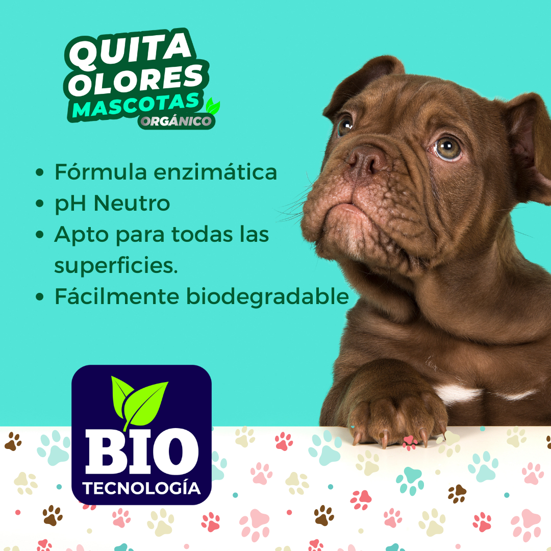 Modo de uso: 1) Retire cualquier residuo sólido y seque el área afectada con pañuelo o toalla. 2) Agite la botella y rocíe Quita Olores en el área afectada. 3) Deje que las enzimas actúen por unos minutos. Repita si es necesario. Los olores fuertes que no se trataron en un tiempo razonable pueden requerir más de un rociado.