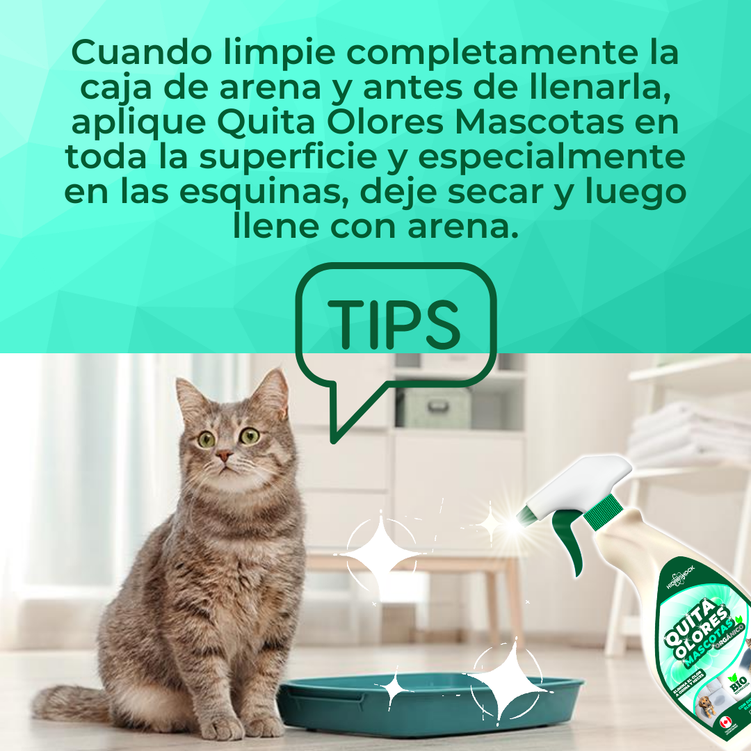 Sugerencia para la caja de arena: cuando limpie completamente la caja de arena para mascotas y antes de llenarla, rocíe todo y especialmente en las esquinas, deje secar y luego llene con arena.